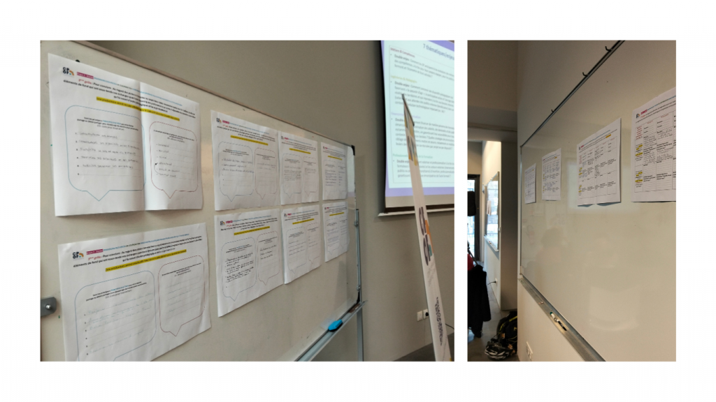 L’enjeu était d’imaginer ce qui pourrait concourir à davantage de coopération dans les dynamiques partenariales des parties prenantes de la formation professionnelle à différentes échelles (locales, nationales etc.). L’ensemble des productions a été ensuite affiché pour tous les participants à cette journée.