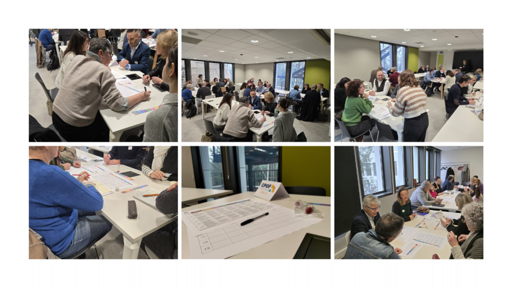 Lors de ce premier atelier, les participants se sont répartis en 9 groupes de 4/5 personnes. A l’aide d’une grille de jeu, ils ont pu dresser des diagnostics et répondre à différents questions autour de 7 thématiques différentes: